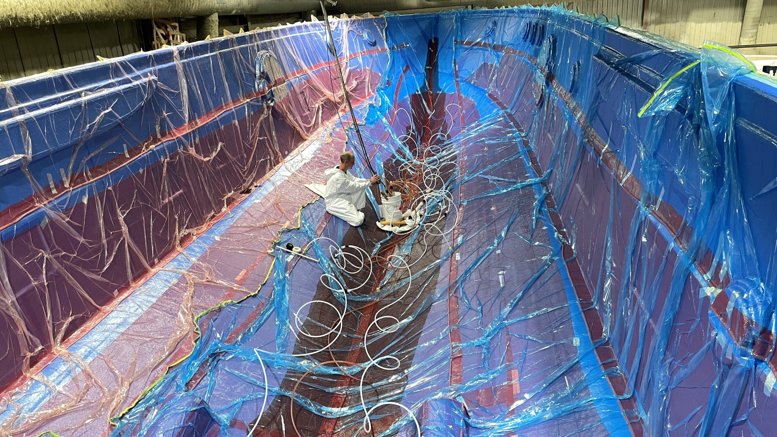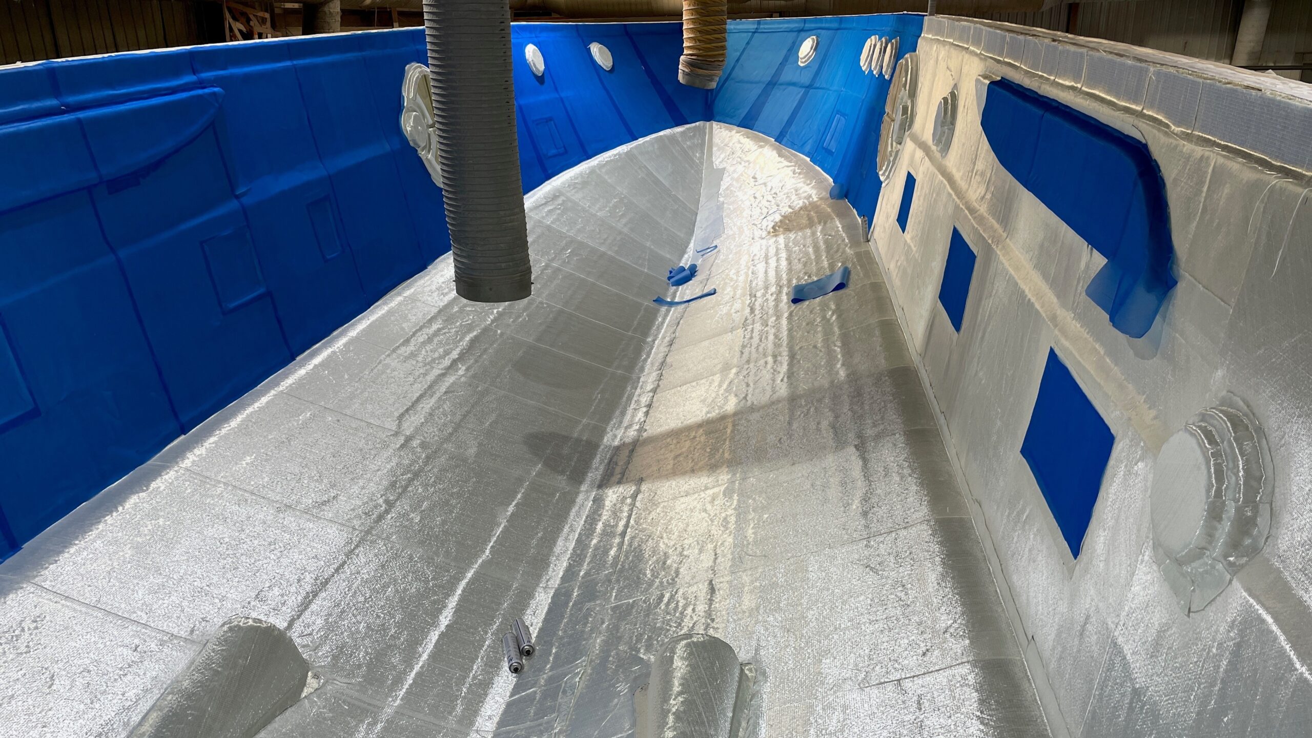 Five layers of Interlux 2000 and two layers of Interlux CSC anti-fouling bottom paint